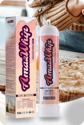 Amaz Whip Cream Chargers .As a food additive, it can be used in bakeries, cocktail bars, or restaurants for rapid flavor infusions to create perfect drinks, sauces rothy cream, and mousses with a smooth, flurry, and savory taste Amaz Whip is one of the few cream chargers manufacturers who can fullfill 90% in-house production from N20 gas production, cartridge production, gas filling, cartridge processing to final packaging.